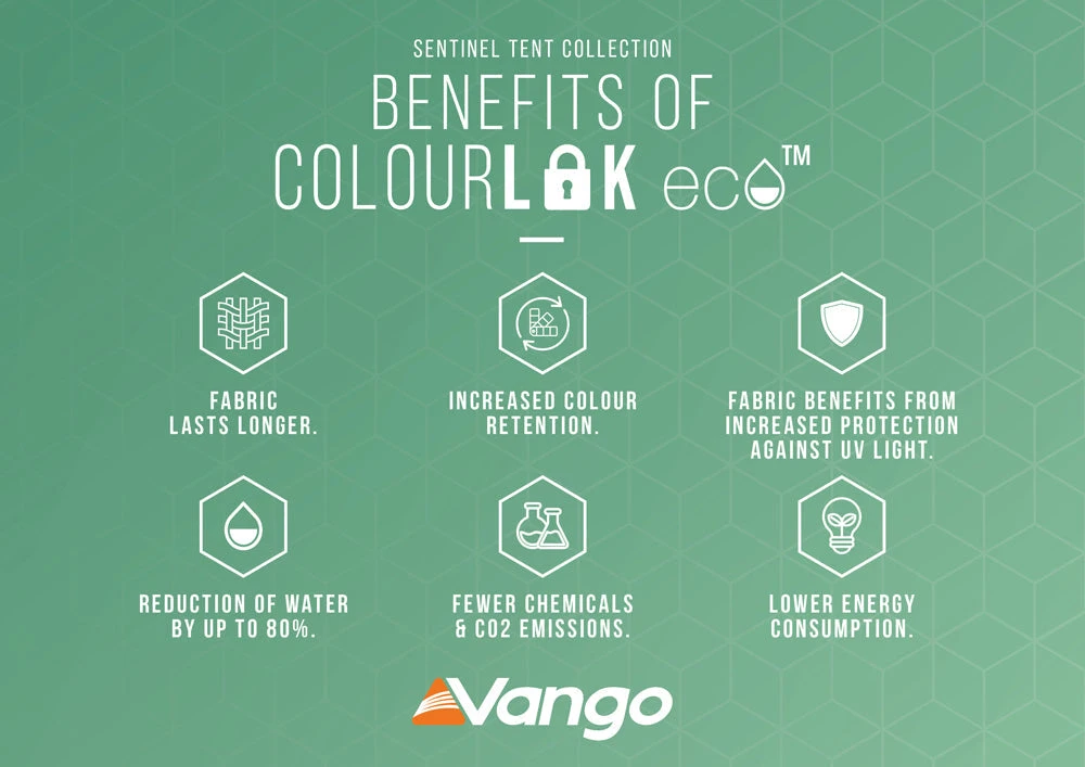 - Sentinel Fabric – When pack size and weight are the key factors in choosing your tent, our specifically designed Sentinel Fabric will surpass your needs. Sentinel is strong and durable, incorporates our ColourLok Eco technology for superior longevity, and is waterproof to a 4,000mm HH rating, ensuring great quality and performance coupled with compact pack sizes.